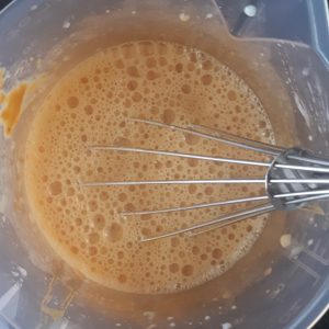 - Whisk the milk ,pumpkin puree , golden syrup and Aquafaba in a jug until slightly frothy