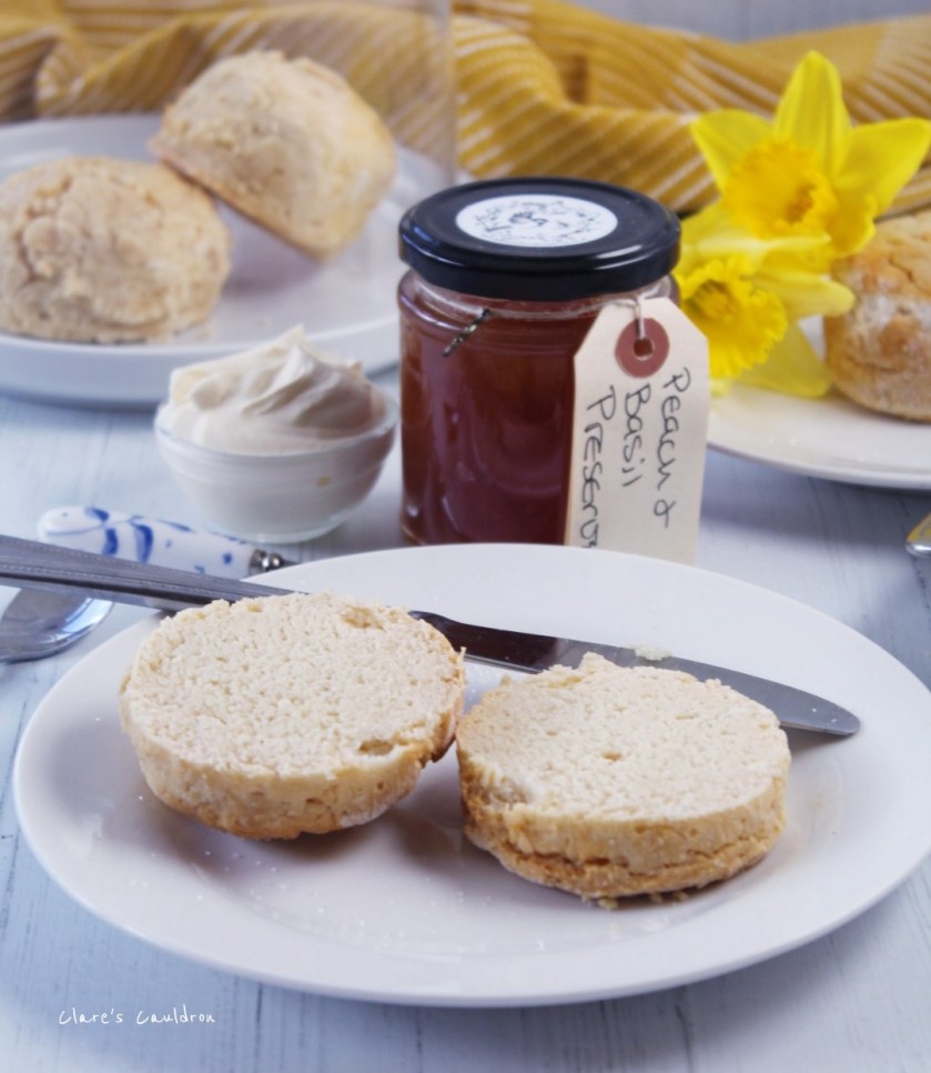 My Jam of choice with these is a little Peach and Basil Number , courtesy of Jane at Labour of Love Preserves….. absolutely delicious ššš