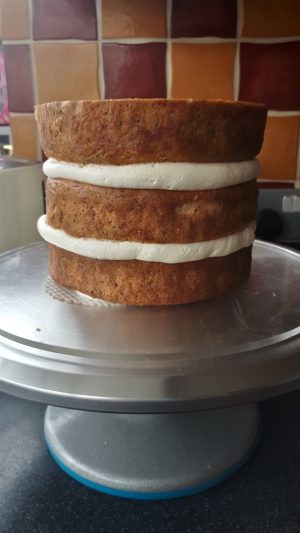 - If fully decorating I advise to wrap in cling film after this time and place in freezer for an minimum of one hour before trimming and stacking – – – –
