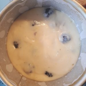 - Add 3 Tbsp Cordial and blackberries to the batter and stir in gently with a spatula until combined