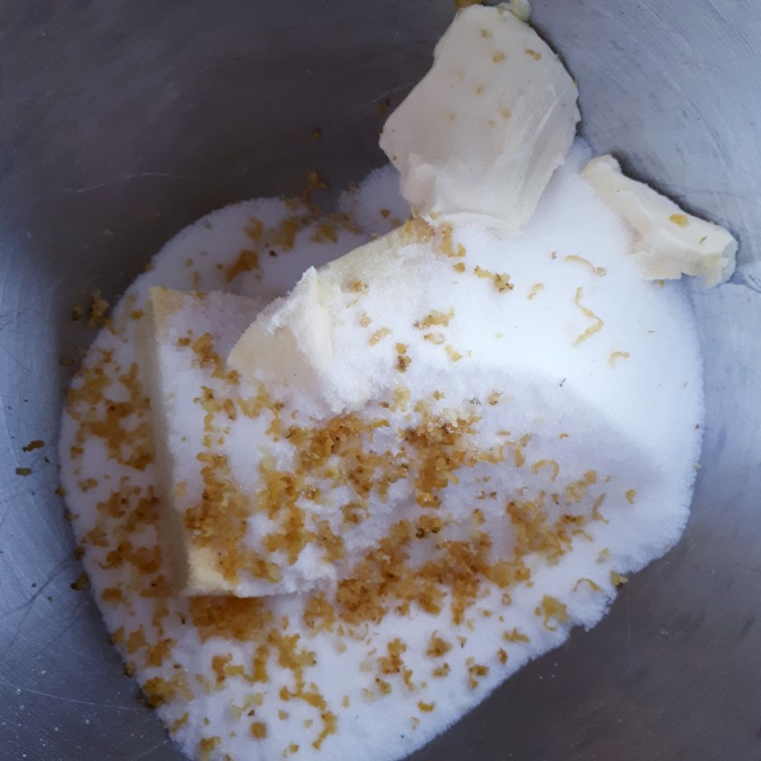 - Place the butter, sugar and lemon zest into a large bowl, or the bowl of your stand mixer and beat on medium-high speed until light and fluffy, around 2 minutes.