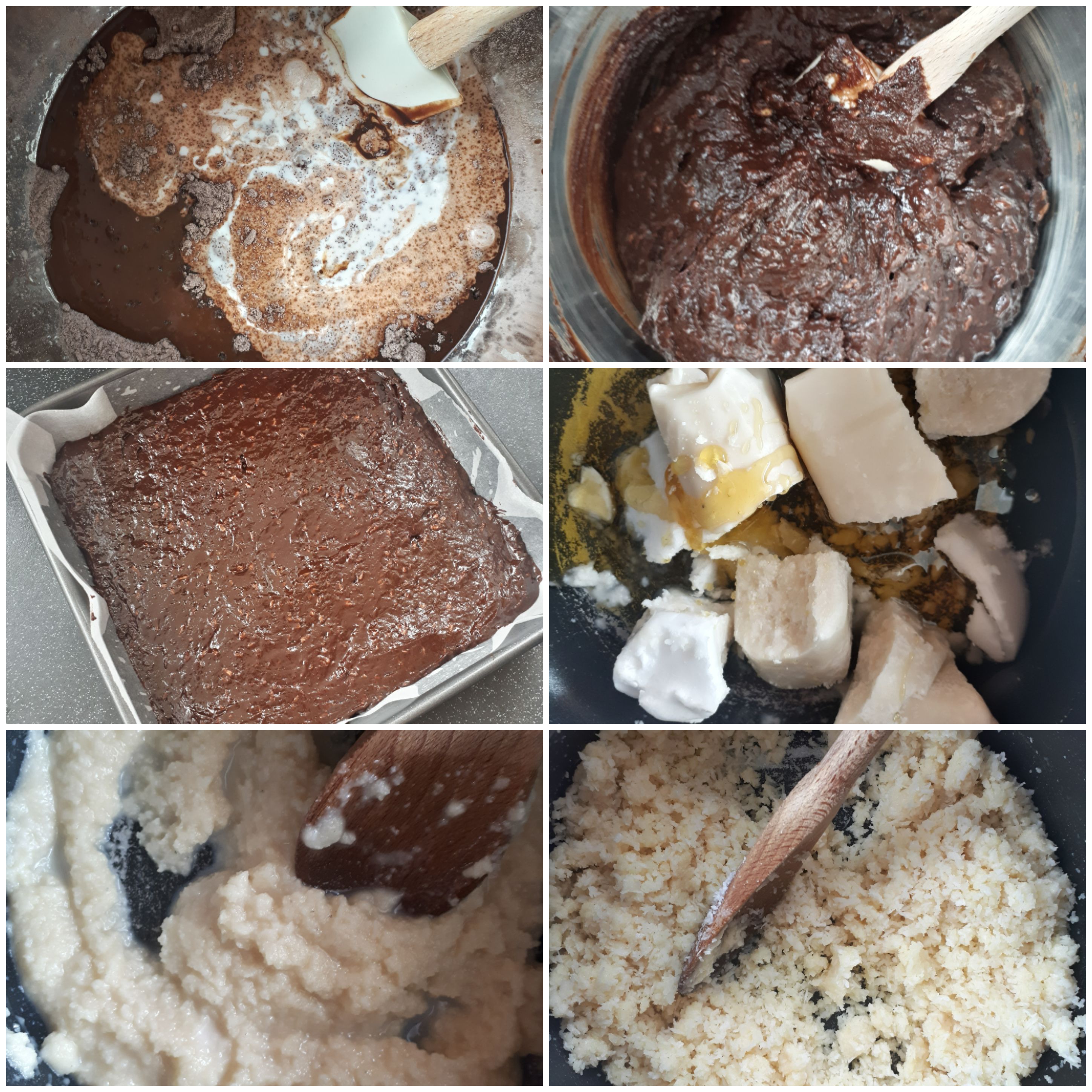 - For the topping, place the coconut oil in a small pan and add the creamed coconut and syrup,