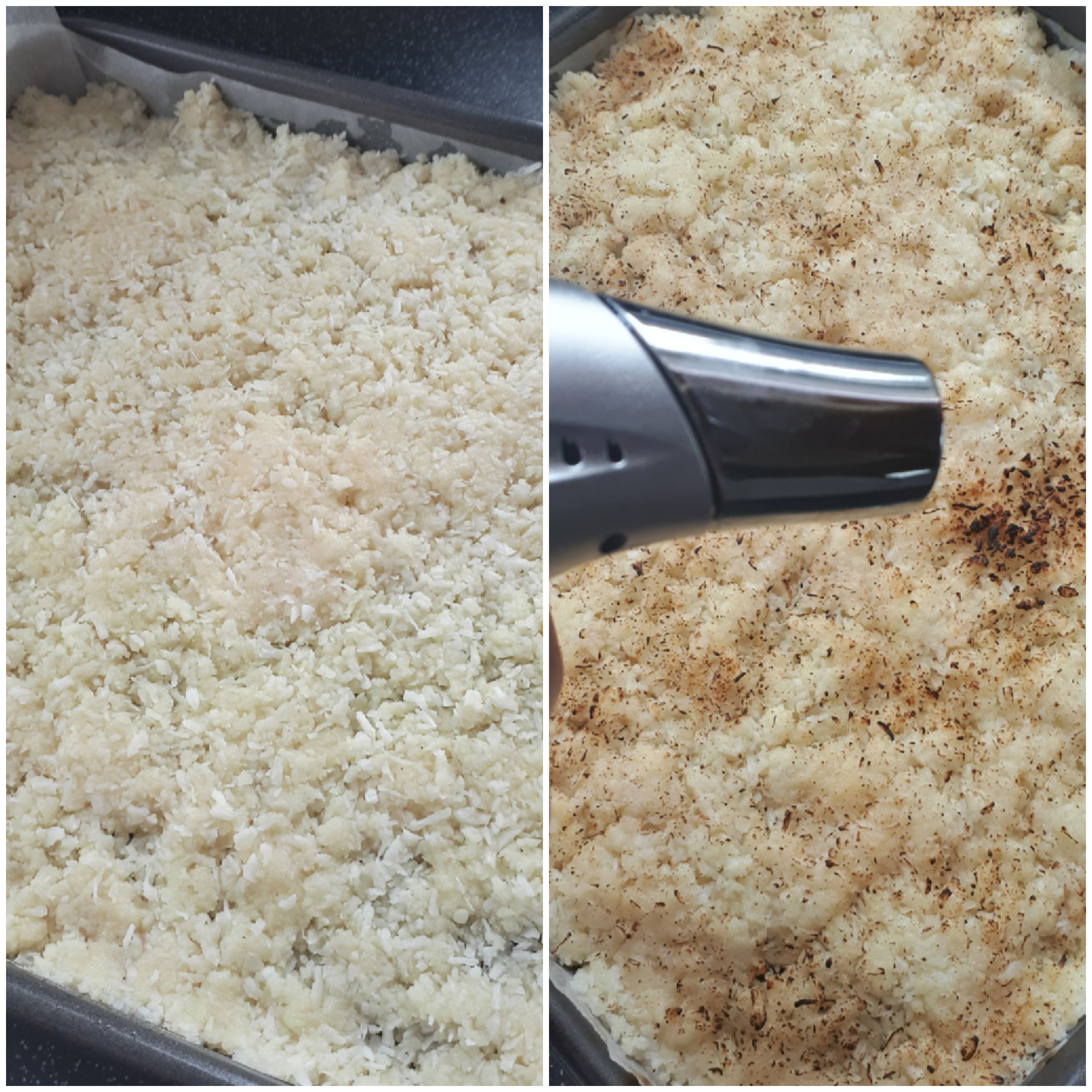 - Blow torch or place under the grill ( On medium ) until toasted… keep a keen eye it browns quickly once it starts