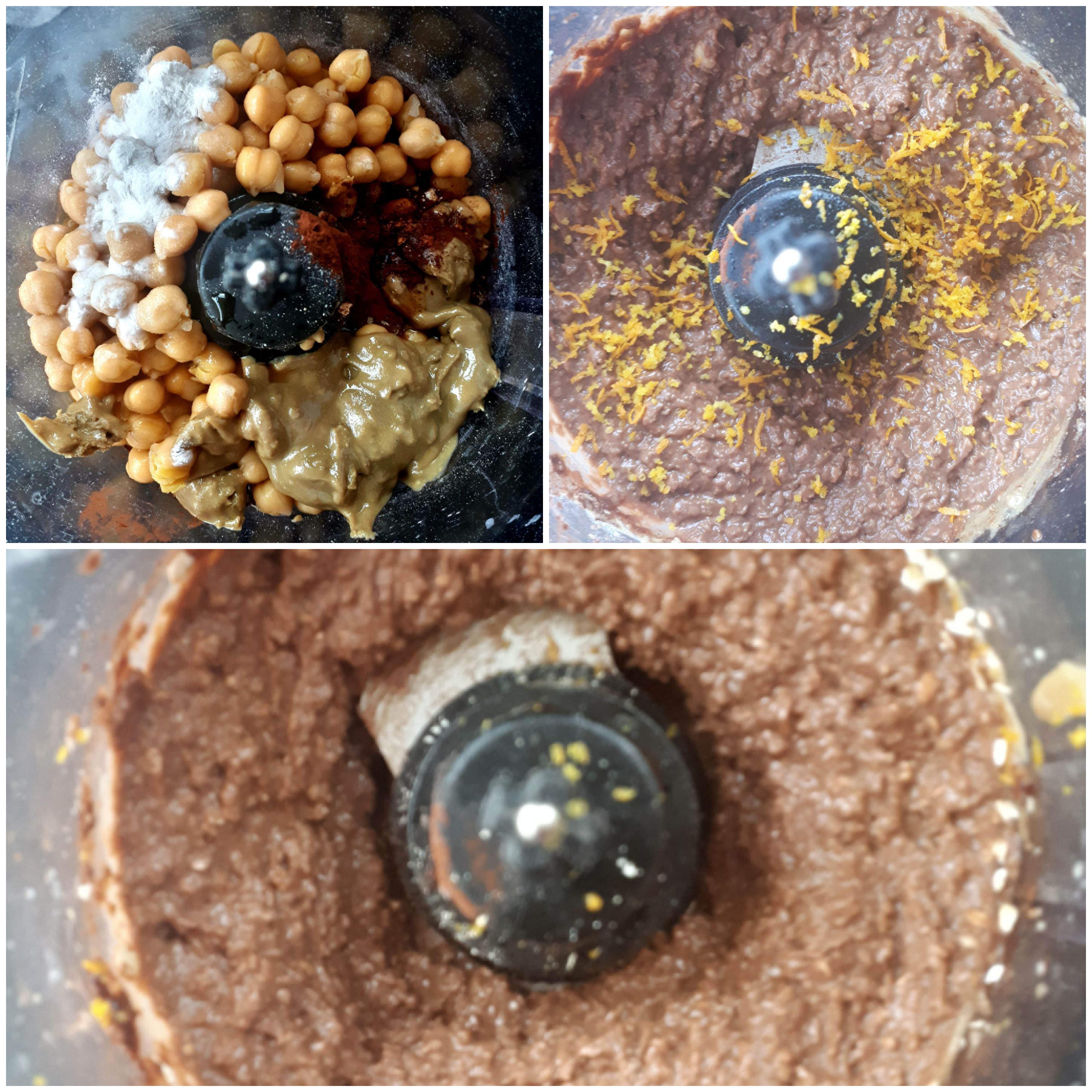- Add the chickpeas, oats, vanilla, seed butter , baking powder, and cocoa powder a food processor, and pulse til…… ermmmm disgusting