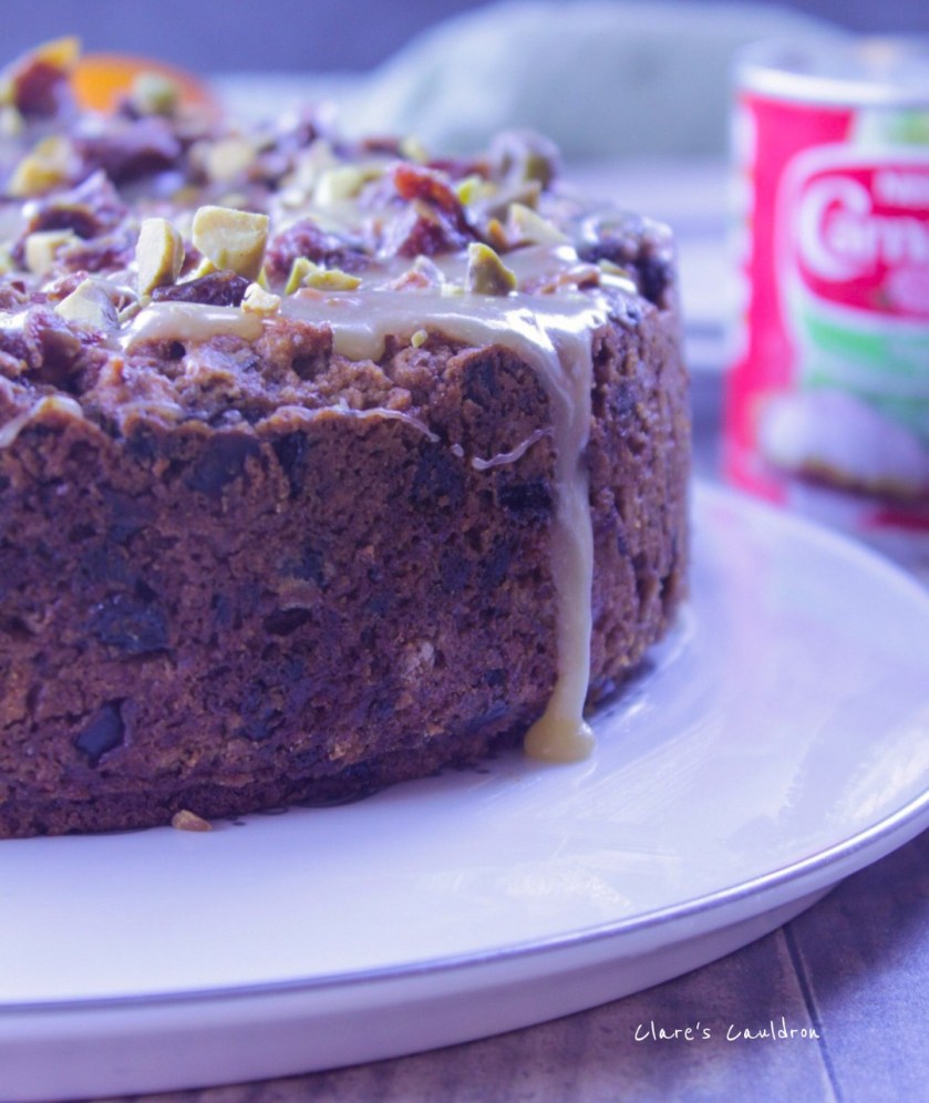 It uses an easy boil and bake method so no need for fruit soaking and a tin of vegan condensed milk for added depth and a great crumb and moistness