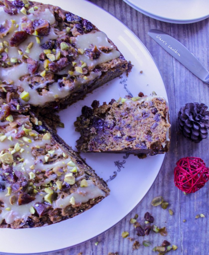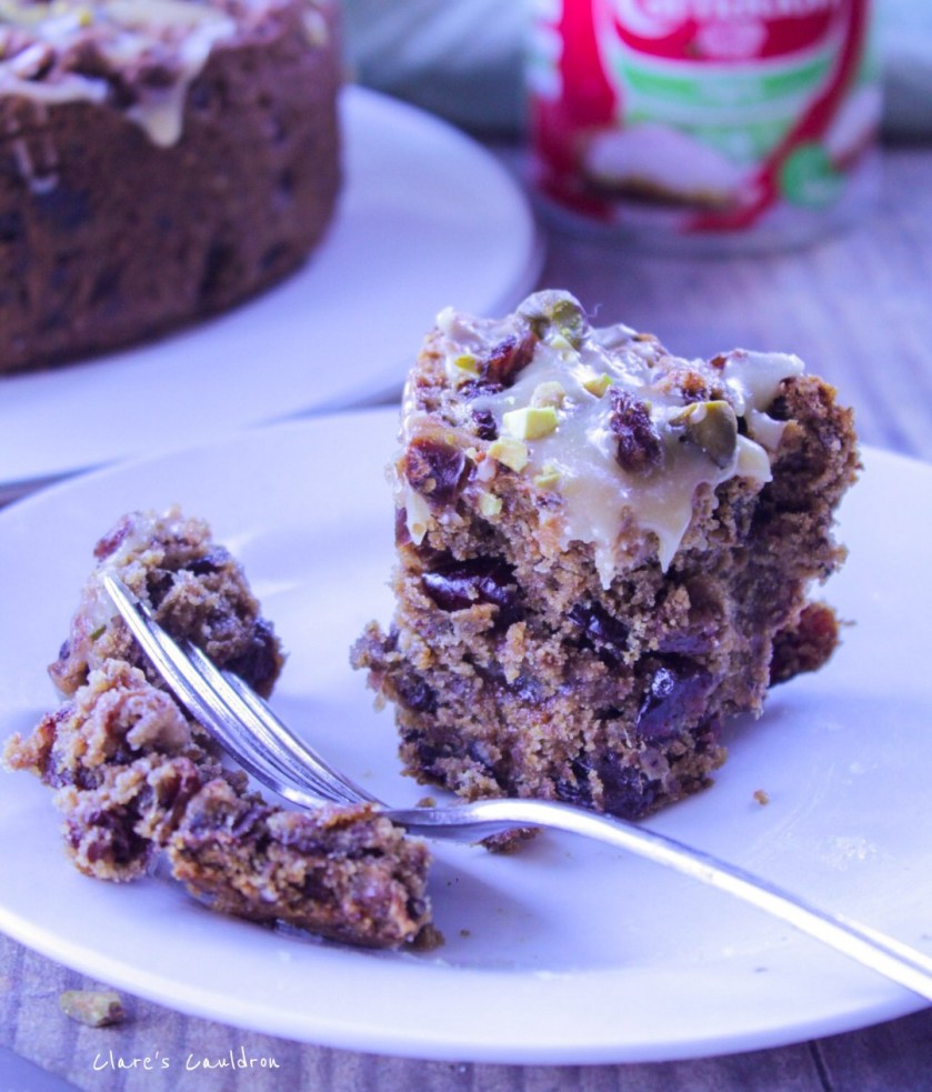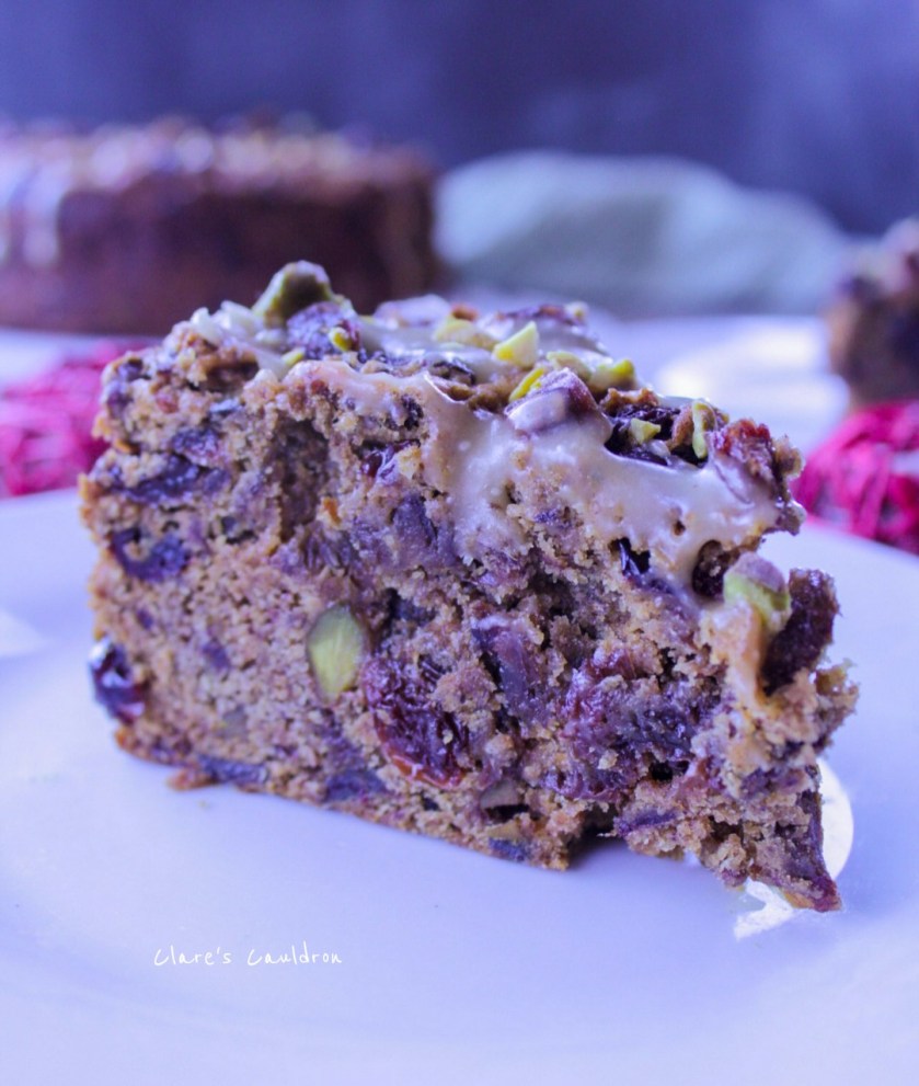 A beautifully moist Pistachio and Date and Dried Fruit Cake, using a easy boil and bake method